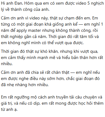 Thứ hai là vì sáng nay thức dậy nhận được những tin nhắn cảm ơn vì video:
